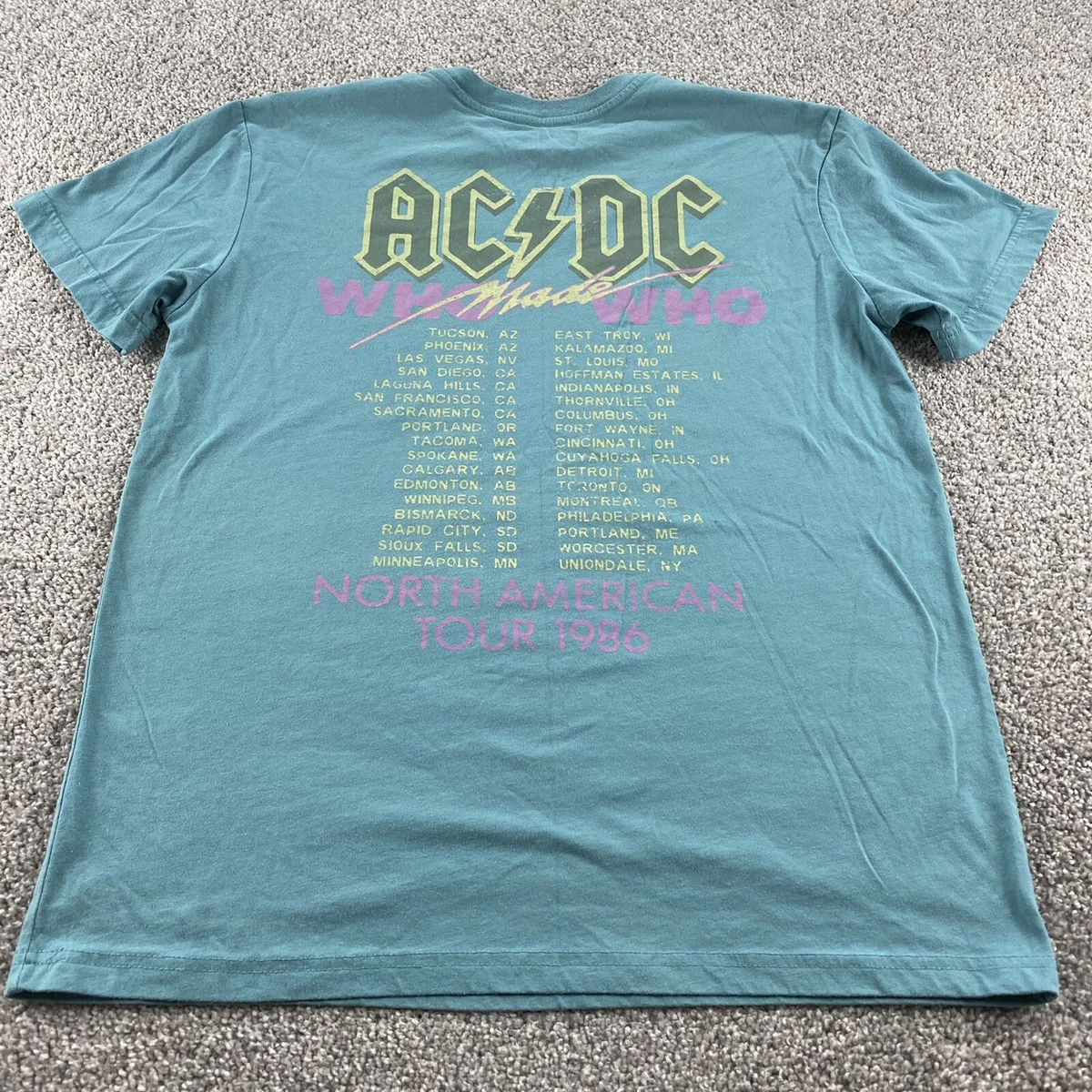 AC/DC Shirt Mens Medium Blue Cotton Blend Graphic Concert 1986
